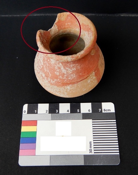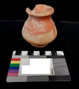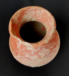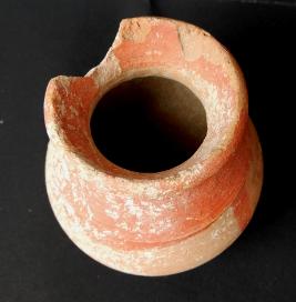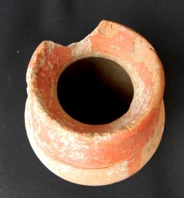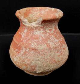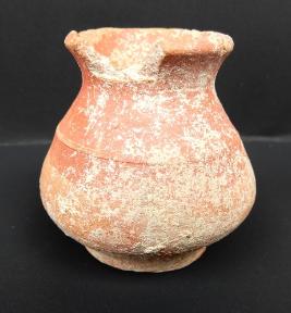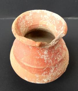 A Miniature Terracotta red ware Pot medium in fabric, which have out turned rim and shallow base. Red slip is applied on the pot.
