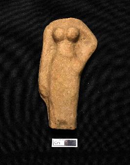 | Description / विवरण | A fragmented terracotta plaque showing a female figurine, the figurine is intact from neck upto knee and rest is missing. The left hand is rested on the waist while right hand is straight in nature. Prominent breast can be seen. The object is in low relief. |
