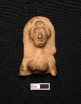 | Description / विवरण | A fragmented terracotta plaque showing a female figurine with headgear. Nose and lips are partly visible. Breasts are prominent. The object is red in colour with smooth surface. |