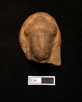 | Description / विवरण | A fragmented terracotta plaque showing an eroded face with headgear. The object is red in colour with smooth surface. |