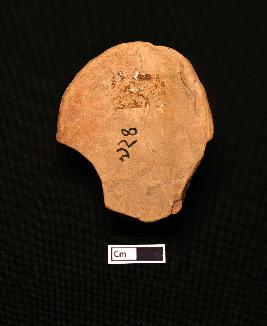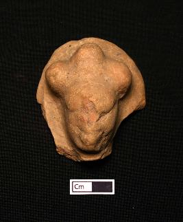 | Description / विवरण | A fragmented terracotta plaque showing a human face with conical shape headgear. Face is almost eroded. The object is red in colour with smooth surface. |