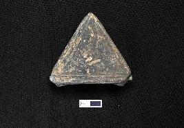 | Description / विवरण | A terracotta tringular object with stand in three corner. The object is black in colour. Probably it was used for small tool. |