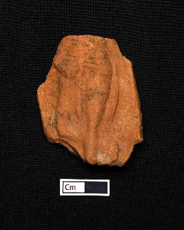 | Description / विवरण | A fragmented terracotta plaque showing a human figurine broken above waist. The figurine is in standing posture with cross legs. Decoration can be seen in the waist. The object is red in colour with smooth surface. |