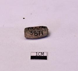 | Description / विवरण | A standard barrel shaped bead with a weathered abraded surface that appears blackish |