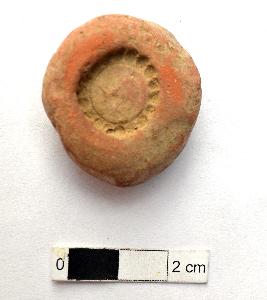| Description / विवरण | It is a circular terracotta sealing of baked clay stamped with a wheel without any legend on it. |