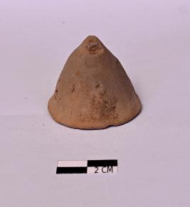 | Description / विवरण | Unidentified Cone shaped terracotta object with perforation across near the base . the top is sharp tipped while the base is flat |