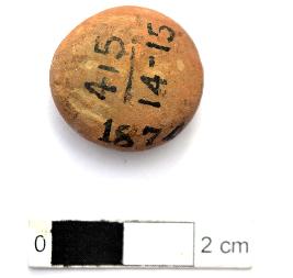 | Description / विवरण | It is an almost circular terracotta sealing of baked clay, the impression of Buddhist creed written on it in six lines can be observed. |