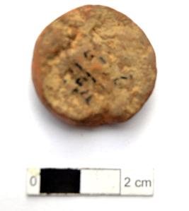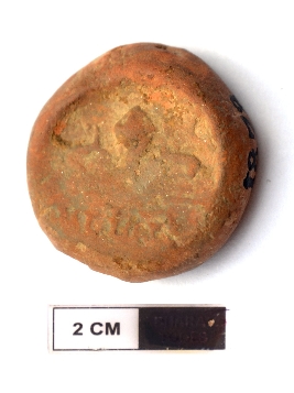 | Description / विवरण | It is a circular terracotta sealing of baked clay, the impression of two deer and a wheel in-between can be observed. |
