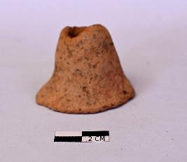 | Description / विवरण | A terracotta games-man, roughly conical in shape, is broken at the top and hollow from inside while the base is completely flat. |