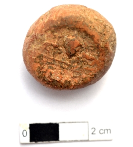 | Description / विवरण | It is a terracotta sealing of baked clay, the legend at the back has worn out. |