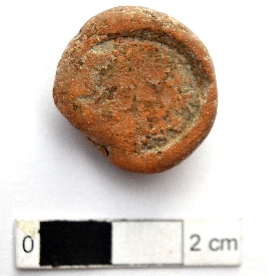 | Description / विवरण | It is a terracotta sealing of baked clay, the legend at the back has worn out. |