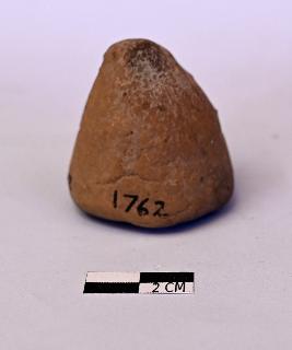 | Description / विवरण | A well baked terracotta games-man, conical in shape , is parly mutilated near its pointy top. the surface texture is rough and uneven |