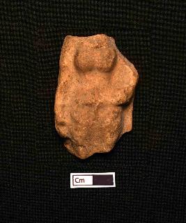 | Description / विवरण | A terracotta fragmentary plaque showing a head less feamle figurine. Left hand is rested on waist while right one is straight. Breasts are prominently visible. The object is in low relief and red in colour. |