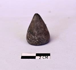 | Description / विवरण | A well baked, handmade, terracotta gamesman in a conical shape with a pointy top, is black in color . |