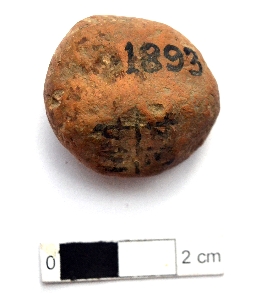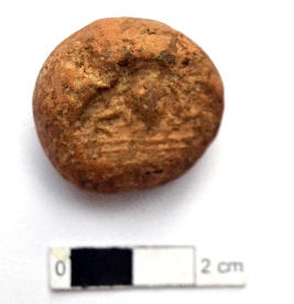 | Description / विवरण | It is a terracotta sealing of baked clay. The upper half, which is separated from the lower by double horizontal line, depicting two deer and a wheel in-between. |