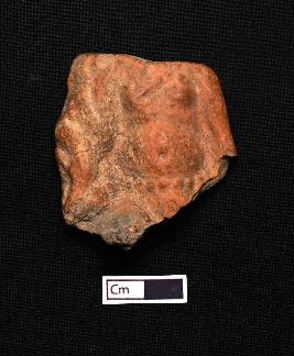 | Description / विवरण | A terracotta plaque showing a bust of a human figurine. A beaded decorated waist brace can be seen. The object is red in colour with smooth surface. |