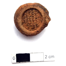 | Description / विवरण | It is a circular terracotta sealing of baked clay with Buddhist creed written on it in six lines, which is worn out. |