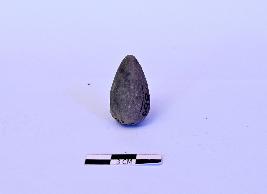 | Description / विवरण | A drop shaped terracotta gamesman, having a nearly round body and a conical or tapered top.It has a kiln fired black surface. |