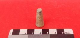 The object identified as Games Man by the Excavator, would have been used for entertainment. The object is flat from the bottom and conical from the top. conical top is also seeming flat.