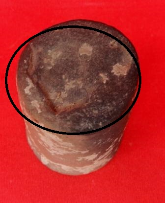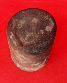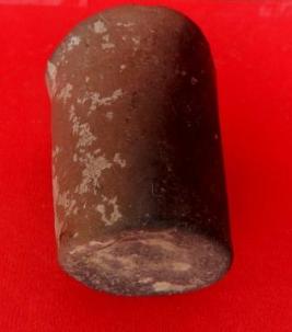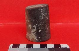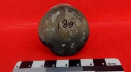 The object identified as Games Man by the Excavator, would have been used for entertainment. The object is flat from the bottom and at the top also flat. Object is gray in color.