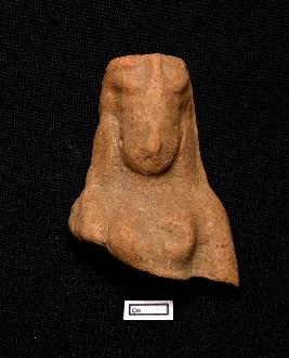 | Description / विवरण | A terracotta plaque depicts a female figurine adorned with elaborate headgear. While her face is not entirely visible, her nose is discernible. The artwork also partially reveals her breasts. |
