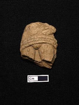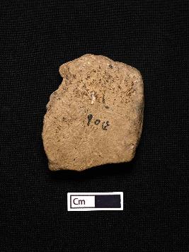 | Description / विवरण | A fragmented human figurine, visible from the belly to the thigh, depicts the left arm resting on the thigh. It features a decorated waist brace adorned with three parallel lines. |