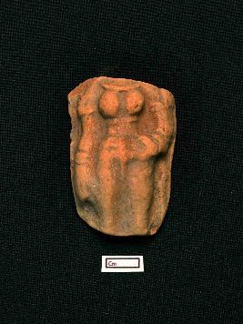 | Description / विवरण | A fragmented terracotta plaque features a headless female figurine. Her left hand is gracefully rested on her waist, while her right hand is placed vertically. Prominent breasts add to the figurine s allure. Her belly area tapers gracefully, and her hip portion extends elegantly. |