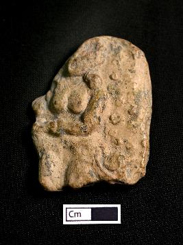 | Description / विवरण | The terracotta plaque depicts a fragmented female figurine, revealing a broken left hand and partially visible face, with prominent breasts. The piece is adorned with intricate decorations. |
