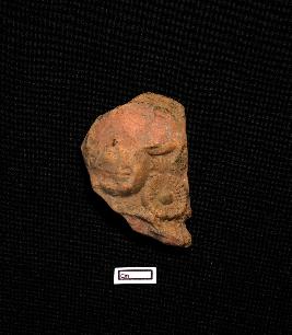 | Description / विवरण | A fragmented terracotta plaque featuring a human face adorned with a circular earring. Lip can be seen. Rest is not visible. |