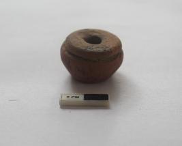 | Description / विवरण | A terracotta bead in ghat shape. It is red in color. |