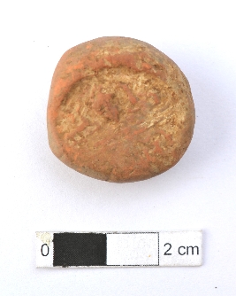 | Description / विवरण | It is a terracotta sealing of baked clay, depicting two deer and a wheel in-between. |