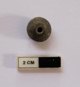 | Description / विवरण | A terracotta bead in a spherical shape. It is partially damaged in condition and gray in color. |