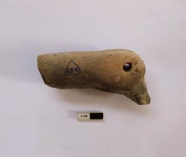 | Description / विवरण | The extant specimen is the head and adjoining neck of a bird figurine. The rounded head and beak are prominently seen. A perforation through the head is also seen. |