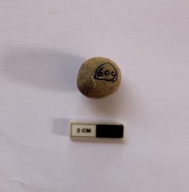 | Description / विवरण | A terracotta sling ball in spherical shape. It is dull red in color. |