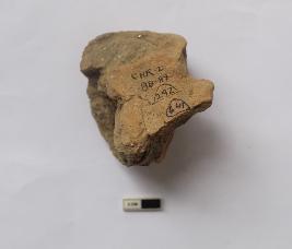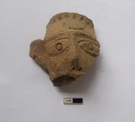 | Description / विवरण | A terracotta human head. It is dull red in color and partially damaged. |