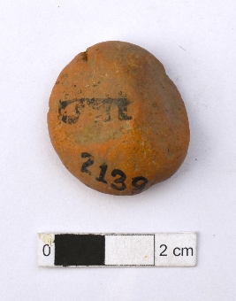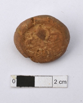 | Description / विवरण | It is a terracotta sealing of baked clay. The upper half, which is separated from the lower by double horizontal line, depicting two deer and a wheel in-between. |