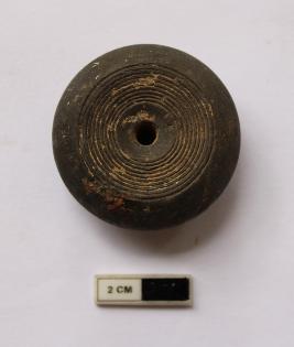 | Description / विवरण | A terracotta wheel shaped bead in circular shape. It is gray in color. |