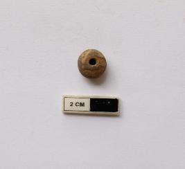 | Description / विवरण | A terracotta bead in a spherical shape. It is gray in color and weathered in condition. |
