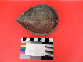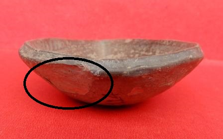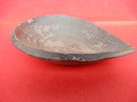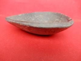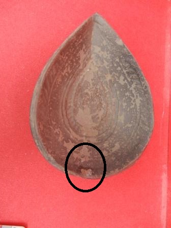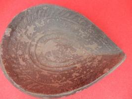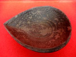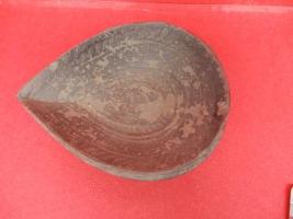 A moulded earthen pot which has line design on inner side of the object.