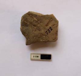 | Description / विवरण | Fragmentary piece of a human figurine. It is too fragmentary to aid in any identification but presence of what appears to be a part of beaded band (as ornamentation) suggest human figurine. It is fashioned from a single mould. |