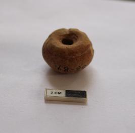 | Description / विवरण | A terracotta bead in Ghat shape. It is red in color and partially damaged. |
