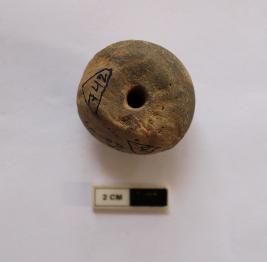 | Description / विवरण | A terracotta arecanut shape bead. It is gray in color and broken in condition. |