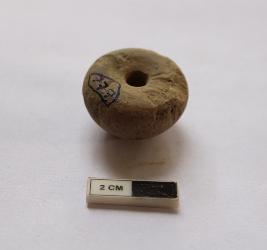 | Description / विवरण | An arecanut shape bead. It is dull red in color and partially damaged. |