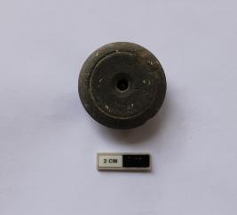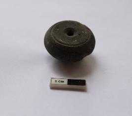 | Description / विवरण | A terracotta arecanut bead. It is black in color and partially damaged. |