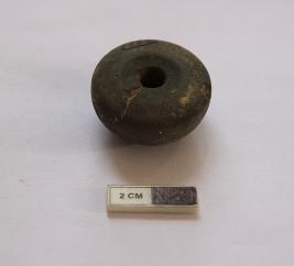 | Description / विवरण | A terracotta bead in arecanut shape. It is black in color and broken. |