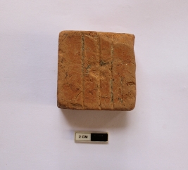 | Description / विवरण | A terracotta weight. Decoration marks are visible on the surface, and it is red in color. |