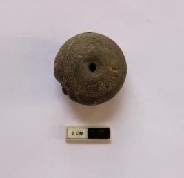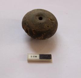 | Description / विवरण | A terracotta arecanut shape bead. It is broken and gray in color. |