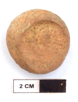 | Description / विवरण | It is a circular terracotta sealing of baked clay, the impression of two deer and a wheel in-between can be observed. |