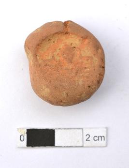 | Description / विवरण | It is a circular terracotta sealing of baked clay, the upper half, which is separated from the lower by double horizontal line, depicting two deer and a wheel in-between. |