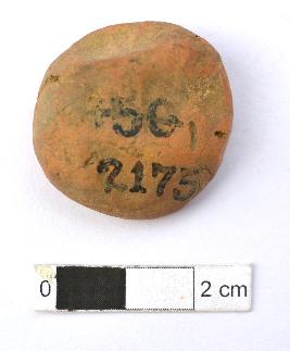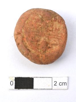 | Description / विवरण | It is an almost circular terracotta sealing of baked clay, the impression of wheel can be observed. |